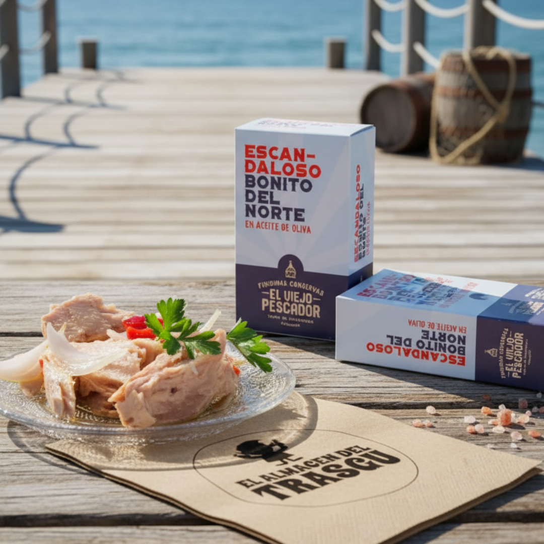 Este Bonito del Norte en Aceite de Oliva viene de El Viejo Pescador, una conservera asturiana pequeñina de Tapia de Casariego que trabaja como se ha hecho siempre: