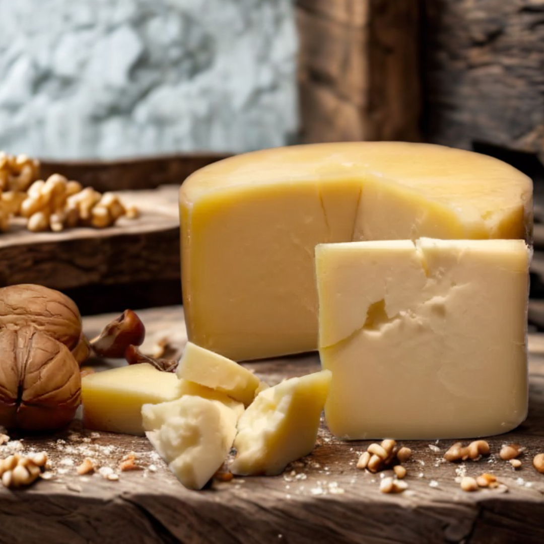 Elaborado con leche pasteurizada de vaca y cuajo animal, este queso semiblando se caracteriza por su corte limpio y su textura lisa, flexible y elástica. Su maduración artesanal le confiere un sabor único y una suavidad inigualable.